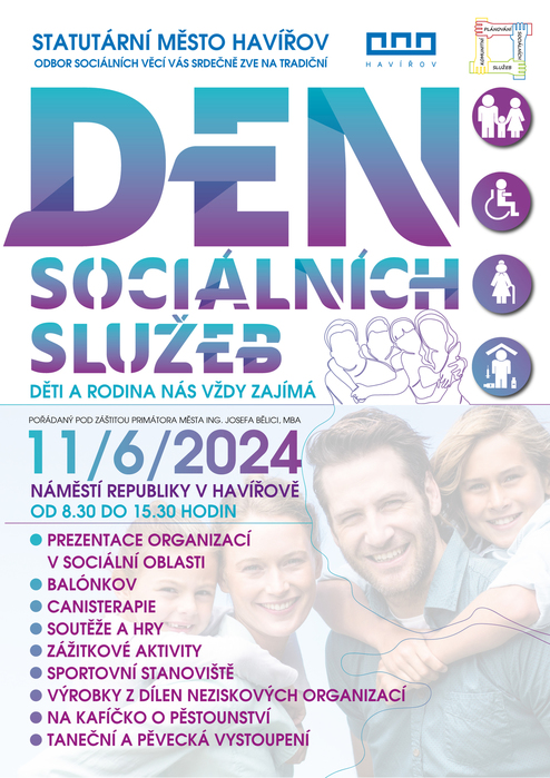 Srdečně zveme k návštěvě nám. Republiky v úterý 11. 6. 2024 od 08.30 hodin, kdy proběhne další ročník Dne sociálních služeb. Budou se zde prezentovat organizace působící v sociální oblasti. Středisko Helios samozřejmě také nebude chybět, budeme se prezentovat nejen tím, jaké služby nabízíme, ale rovněž si budete moct zakoupit i výrobky z našich Tvořivých dílen. Těšíme se na Vaši návštěvu!