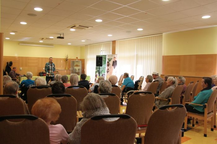 Na první den v měsíci říjnu připadá každoročně Mezinárodní den seniorů. Našim uživatelům jsme mohli díky sponzorskému daru k jejich svátku zprostředkovat vystoupení známého zpěváka a imitátora Vladimíra Hrona. Dopoledne plné zábavy proběhlo 5. 10. v jídelně našeho domova. Zazněly písně všem dobře známých interpretů, jako je Karel Zich, Jiří Korn, Waldemar Matuška, Karel Gott aj.