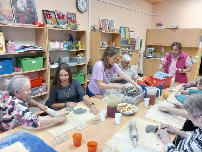 Navázali jsme na ukončený projekt Arteterapie s Montessori spoluprací na společných setkáváních při různých činnostech - malování, práce s papírem, keramikou, hry, povídání... Tentokrát se pracovalo s keramickou hlínou, přípravy na Vánoce vrcholí.