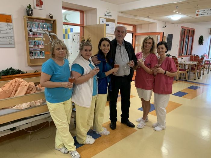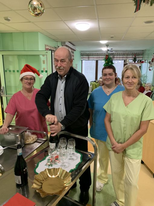Uživatelům i sloužícím zaměstnancům přišli popřát k svátkům a poděkovat za práci ředitel domova MUDr. Milan Dlábek a vedoucí útvaru sociální a přímé péče Mgr. Bc. Gabriela Kunčická.