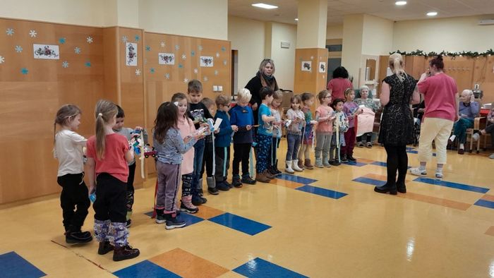 Děti přinesly seniorům krásná přáníčka a od nás jako odměnu dostaly něco dobrého na zub.