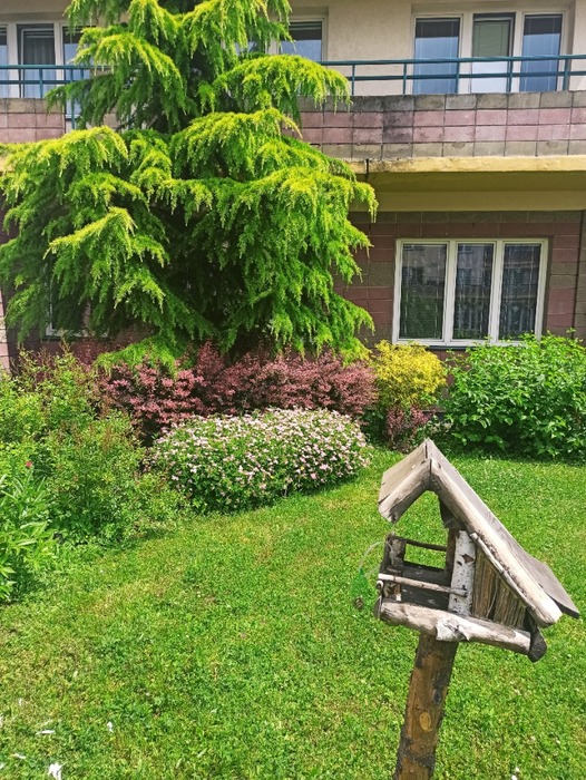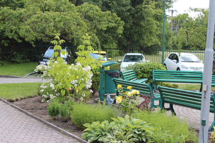 Kdo se jednou prošel po naší zahradě, musí uznat, že je moc krásná. Údržba tak nemalé plochy vyžaduje značné úsilí personálu, kdy největší díl práce má na svých bedrech náš zaměstnanec provozního útvaru Ondřej. Před Domovem naše uživatele potěší osázené mobilní truhlíky s muškáty, kousek vedle kameninové truhlíky osázené hráškem, okrasný záhon kvetoucí dle období (konvalinky, růže, pivoňky, kosatce a další). Hned vedle jehličnany osídlené pravidelně ptactvem, jež uživatele rádi pozorují a krmí. Nedaleko drobný záhon s bylinami (mátou, libečkem pro naši kuchyň), bílým rybízem. V zahradě altánu vedle našich dřevěných hudebníků bylinky, jahodníky a jiné užitkové rostliny. Touto cestou děkujeme i všem uživatelům, kteří se jakkoliv podílí na údržbě naší zahrady, ať už zaléváním rostlin v truhlících, pletím záhonků či zastřihováním rostlin. Každá přiložená ruka se počítá a přispívá k zvelebení naší zahrady, jež má svůj půvab v každé roční době. Teplé a slunné počasí si přímo říká o procházku a posezení na lavičce našeho parku.