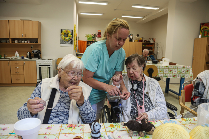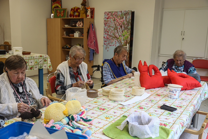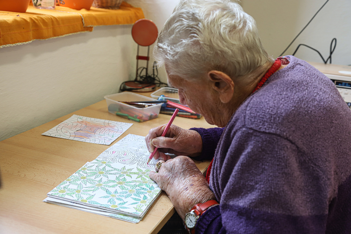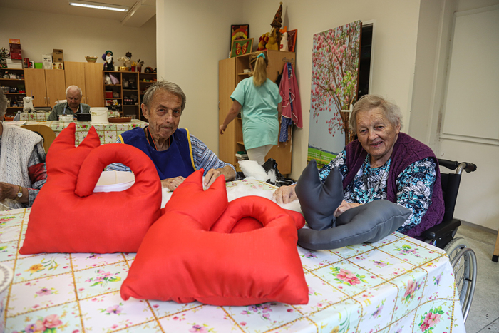 Klienty velmi oblíbenou aktivitou je trávení času v naší "ergo dílně". Jedná se o práci velmi rozmanitou, která umožňuje klientům smysluplně trávit volný čas, rozvíjet a udržovat jemnou motoriku a kognitivní funkce, přijít do styku a pobavit se s dalšími klienty s možností vypití kávy, čaje či zakousnutí něčeho dobrého na zub. Výrobky z dílny z rukou klientů můžeme následně prezentovat při různých akcích, na vánočních či velikonoční trzích či věnovat pro radost nebo jako formu prezentu např. dětem, které k nám chodí vystupovat. - foto Klára Mia Krečmerová